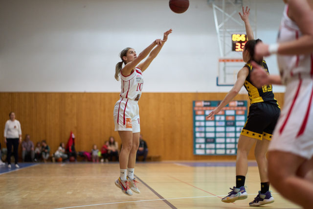 Štvrtú štvrtinu otvorila trojkou Katarína Piperková, na čo odpovedala rovnakou mincou hosťujúca Kyra Liashenko a krátko na to sa spoza perimetra trafila aj Jana Matejčíková. Liashenko potom znížila na 60:40 a 20-bodový rozdiel platil aj po trojkách Evy Ďurjakovej a Lucie Kašperanovej.