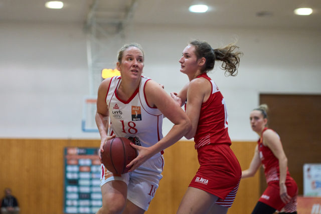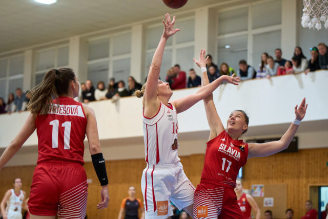 Zostava Slávia Banská Bystrica a body: Janštová 15, Mandić 13, Allen 10, Kollárová 6, Grigerová 5 (Deura 11, Holíková 8, Striešová (C) 6, Nagyová 6, Kozáková 5, da Cruz 4, Podhradská 4). Trénerka: Z. Žirková.