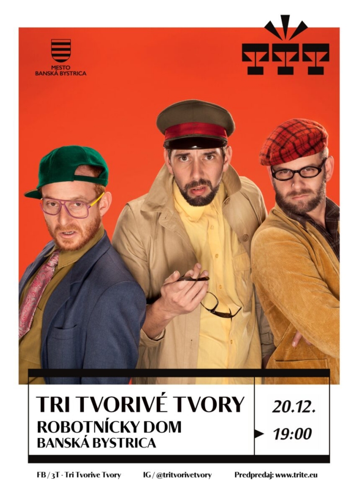 Bystričania, Horehronci a všetok priateľský ľud spod Nízkych Tatier, pozor! Tri Tvorivé Tvory prichádzajú k vám. A to do Robotníckeho domu v Banskej Bystrici, kde spustia svoje legendárne improvizované divadelné scénky. Príďte sa zasmiať a pobaviť…