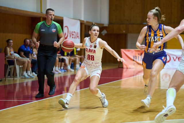 Družstvo spod Urpína malo v druhej časti navrch ešte výraznejšie, keď v jej úvode predviedlo 10-bodovú šnúru (19:40), počas ktorej pridala reprezentantka Čiernej Hory Mujović svoju druhú aj tretiu trojku. V streľbe spoza trojkového oblúka sa zverenkyniam trénerky Žirkovej darilo aj naďalej a svoju druhú a celkovo ôsmu tímovú trojku zaznamenala v závere druhej štvrtiny Brabencová. Domácim naopak v prvom polčase z diaľky nepadalo, keď sa za tri body trafili až v jeho závere, a to na desiaty pokus. Slávistky do veľkej prestávky navýšili svoj náskok na 24 bodov (29:53).