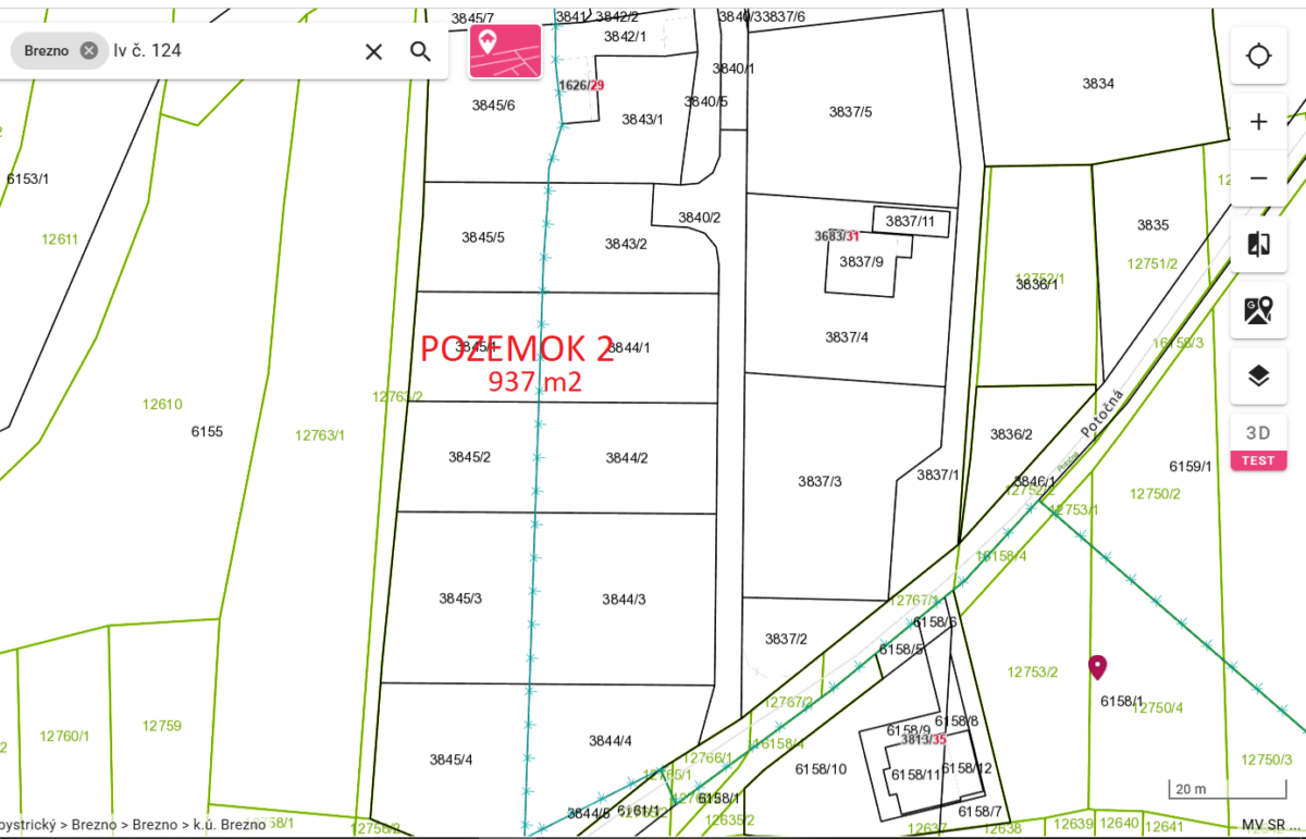 Lukratívny stavebný pozemok 937 m2 – Potočná v Brezne – Starý Mazorník