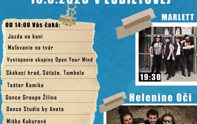 Tohtoročný ľubietovský Happy Day bude festivalom spevu, tanca a zábavy. Veľa nových hostí, skákacie hrady, jazda na koníkoch, súťaže pre deti, tombola a večer niekoľko rokov sľubovaný koncert kapely Heľenine Oči (21.30 h). Tešiť sa môžete aj na koncert kapely Marlett (19.30 h), speváčku Mišku Kukurovú a Divadlo Teáter Komika. Zatancujú vám skupina Open Your Mind, Dance group zo Žiliny, Dance studio by Aneta a Your Eyes. Vstup na podujatie je voľný, vstupné na večerný koncert 10 €.