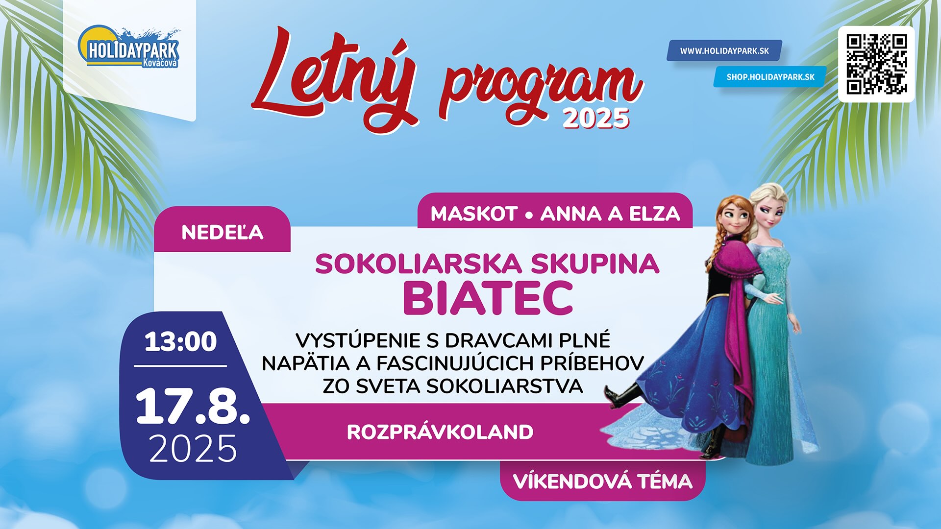 Doslova čarovná bude táto nedeľa v Holidayparku. Sokoliari zo skupiny Biatec prídu so svojimi dravcami a porozprávajú príbehy zo sveta sokoliarstva. Fotiť sa budete s princeznami Annou a Elzou z Ľadového kráľovstva a zatancujete si aj na diskotéke. Viac informácií nájdete tu.